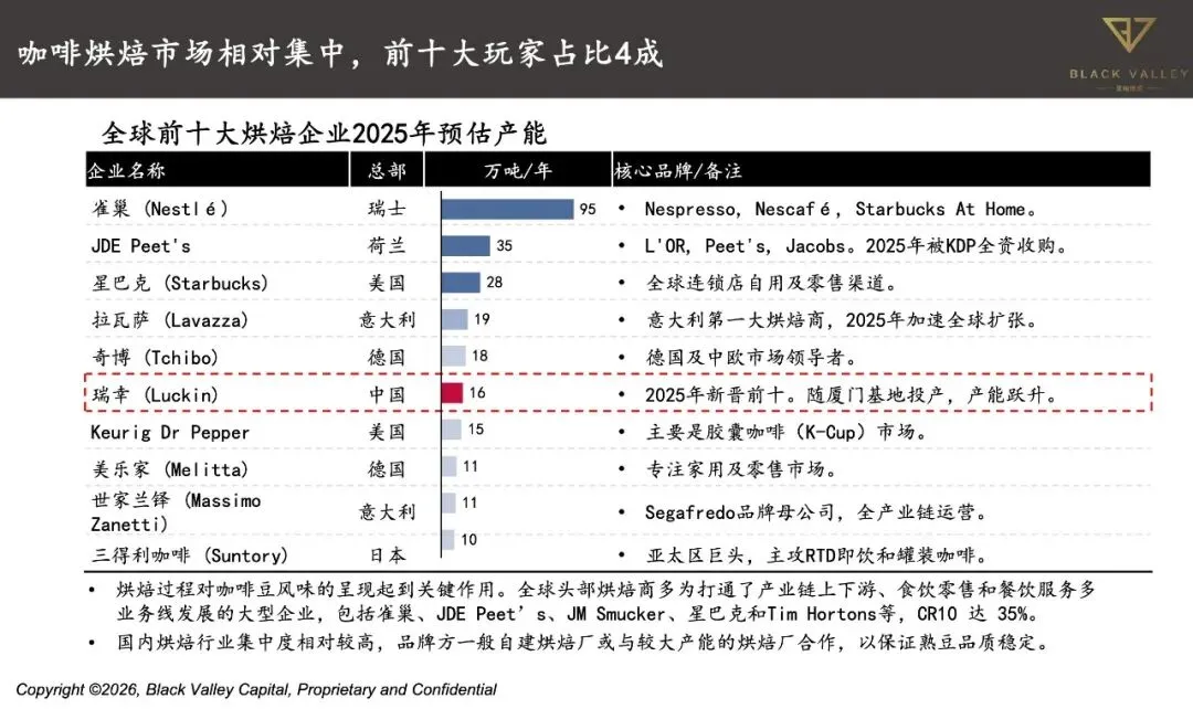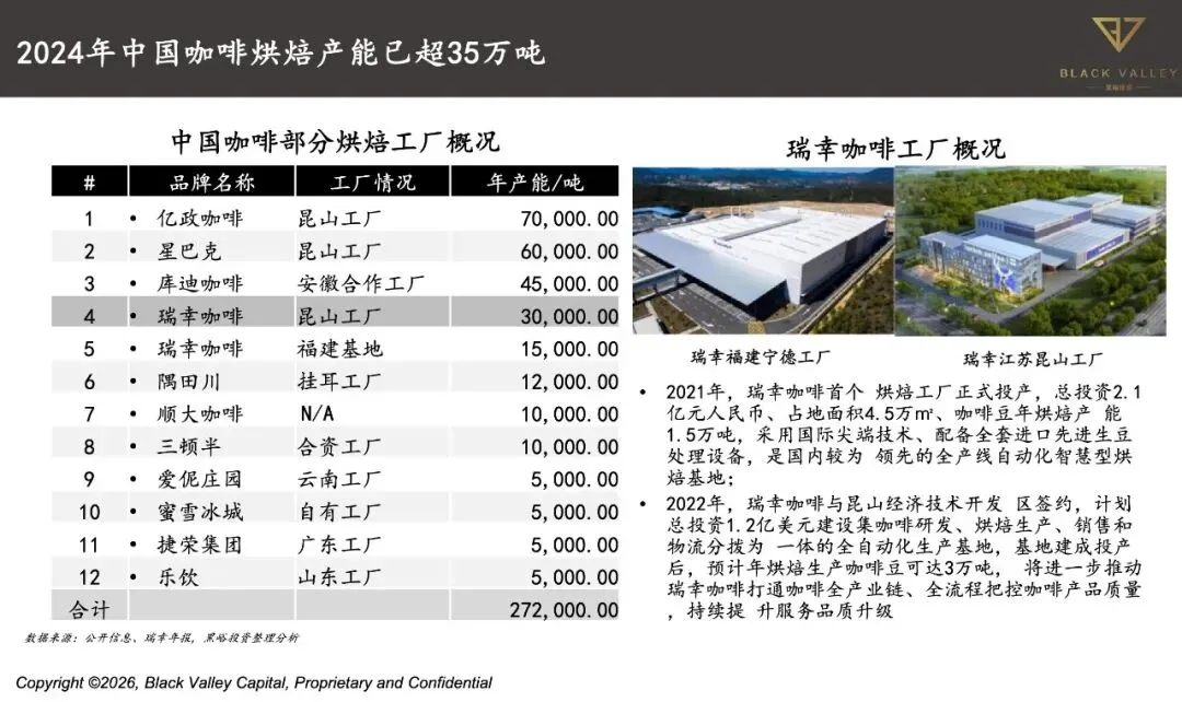 第二级是中游掌控烘焙环节。2025年中国咖啡烘焙总产能超35万吨,瑞幸、库迪、幸运咖稳稳占据前三席位,其中库迪安徽工厂年处理生豆7.5万吨,靠全自动化生产线把烘焙成本压到行业最低。前阵子去周口县城调研,发现幸运咖8块钱美式的底气,正是源于海南基地的零关税生豆和自有烘焙厂,比找河南本地代工节省近三成成本。