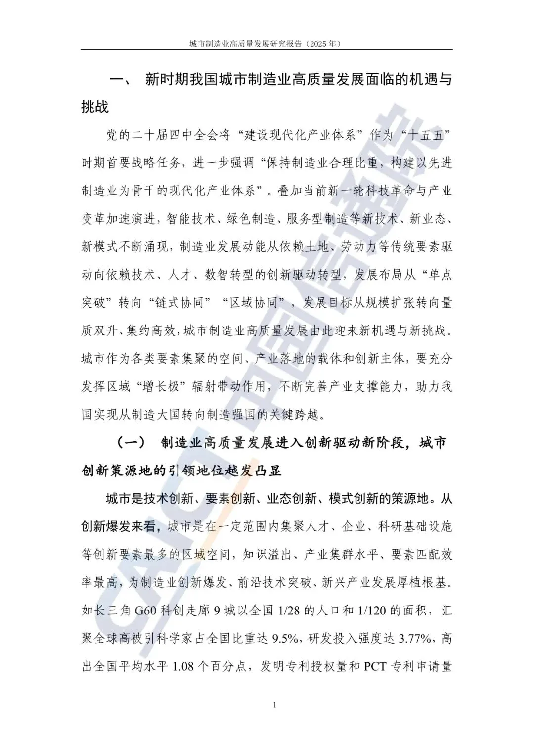 (一)制造业高质量发展进入创新驱动新阶段,城市创新策源地的引领地位越发凸显