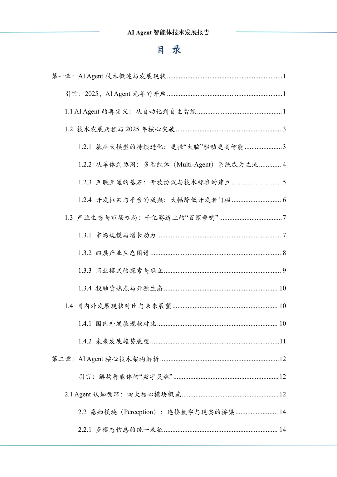 报告聚焦AI Agent领域技术演进与产业发展的核心议题,系统构建了全景式知识体系,阐述AI Agent发展现状、解析AI Agent核心技术架构、梳理AI Agent主流开发框架与平台、总结AI Agent典型应用场景与商业价值、分析AI Agent面临的挑战与风险及治理路径,并展望AI Agent未来发展趋势与产业生态建设规划。
