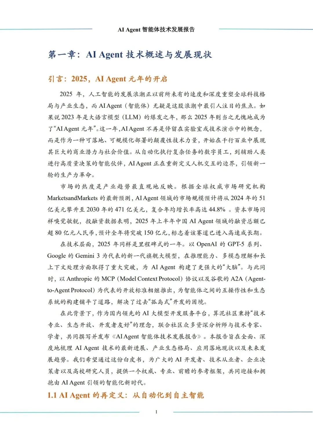 智能体技术发展报告》。本报告旨在全面、深 度地梳理