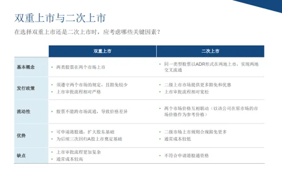 为何很多公司都选择进行第二上市或双重上市,而不是完全退出美国股市再上市,当中的主要考虑因素有哪些;