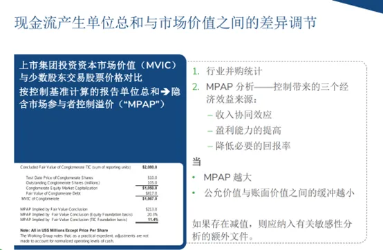 梁国恩先生介绍了现金流产生单位总和与市场价值之间的差异调节的内容。