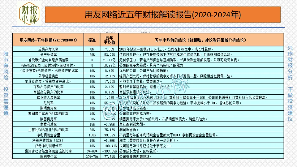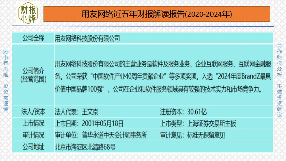 通过上图,我们对用友网络是做什么的、从事什么行业以及做得怎么样有了大概了解。但这些还不够,想要进一步了解该公司,还需要对其财报进行深入分析。财报小烽只分析审计意见为“标准无保留意见”的上市公司,因为该公司的财报真实性和准确性都比较高,朋友们应该远离不是此意见报告的公司。