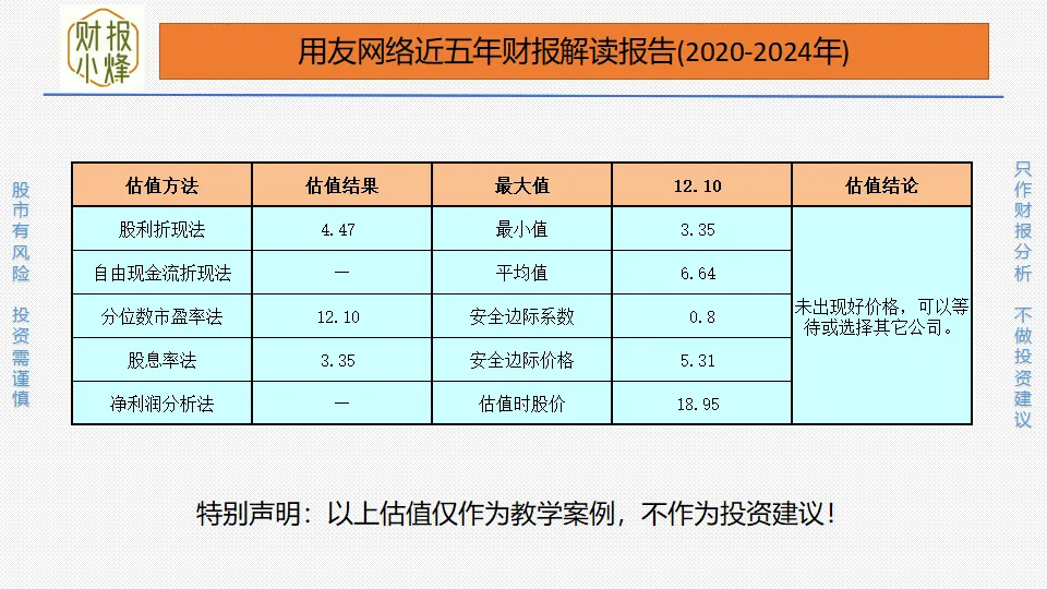 用友网络2024年的销售净利率为-22.61%,说明公司的销售净利率非常低,公司的产品不好,盈利能力非常弱,属于低销售净利率的公司;用友网络2024年的总资产周转率为0.38,说明公司的管理效率非常低,资金运营的效率也非常低,属于低总资产周转的公司;用友网络2024年的权益乘数为2.47,说明公司的财务杠杆较低,负债较低,财务风险也较低,属于低杠杆公司;总之,用友网络公司属于低销售净利率低资产周转率低杠杆公司。