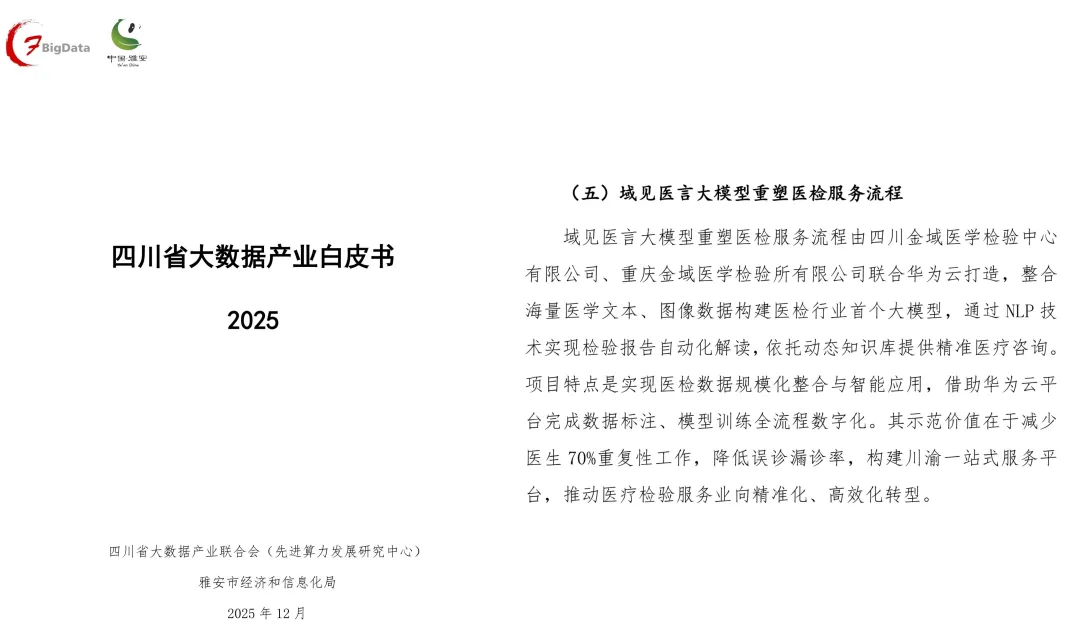 金域医学“域见医言大模型重塑医检服务流程”案例,入选白皮书,这既是对公司在“医检+ AI”融合实践中的阶段性成果的肯定,也体现了行业与社会对医检数智化路径探索的高度关注。