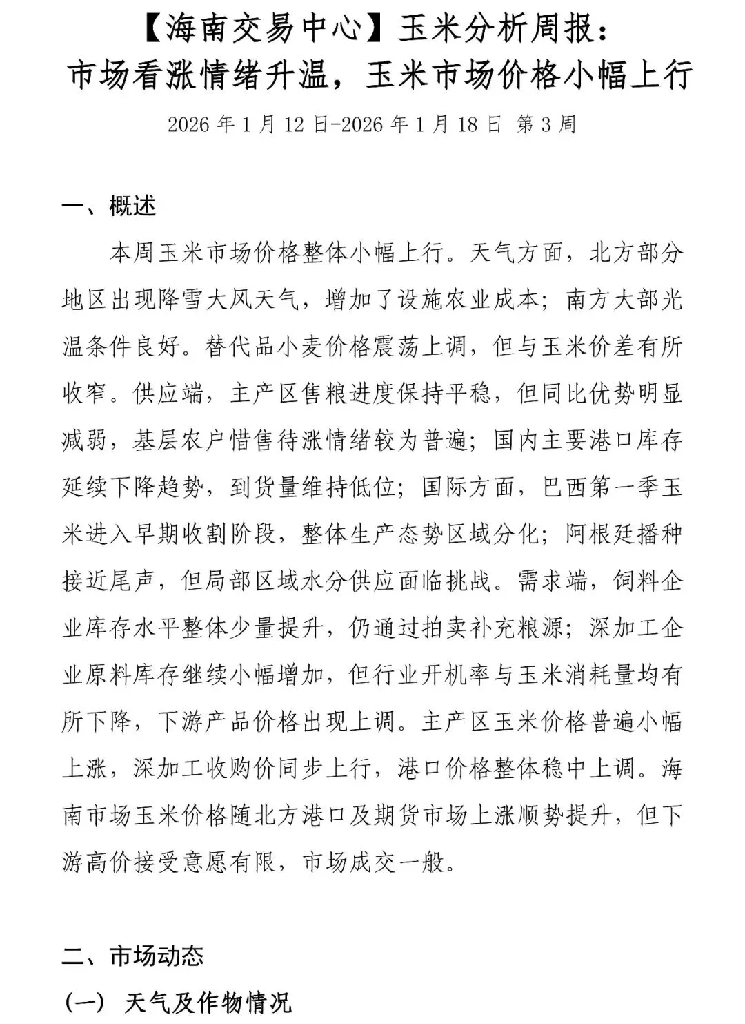 【海南交易中心】玉米分析周报:市场看涨情绪升温,玉米市场价格小幅上行