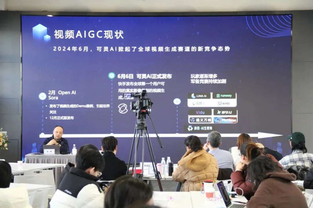 快手科技副总编辑张鹏以《AI视频创作初探》为题,分享了平台视角下AI工具在视频生产中的实用技巧。张鹏由视频AIGC的现状出发,为学员们介绍了可灵AI的使用特性,并结合实际案例演示,向学员们演示了可灵O1的“新玩法”,分享了使用AI创作视频的小技巧,也分析了AI生成视频的局限性。在目前AI的模型、概念、功能、模式等迭代迅速的背景下,呼吁从业者在AIGC视频还没有完备、成熟方法论的当下,要不断学习、尝试、理解各种模型和产品的特性。