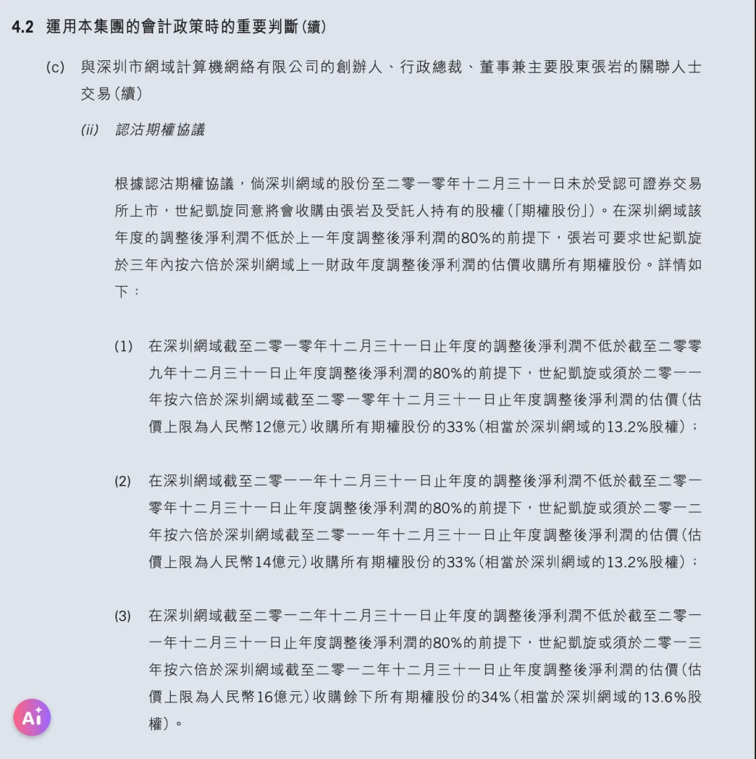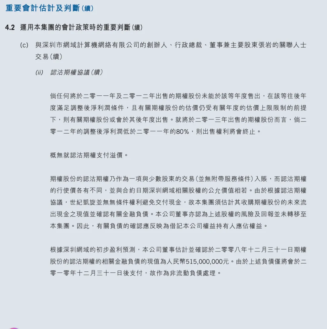 在完成这样的借款入股的操作后,腾讯与张岩签订了业绩对赌合约:要求深圳网域每年净利润不低于前一年的80%方可触发收购。