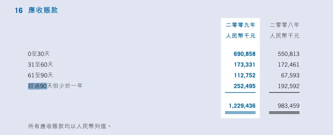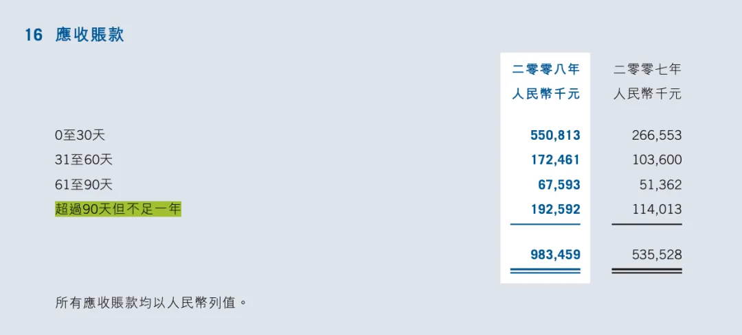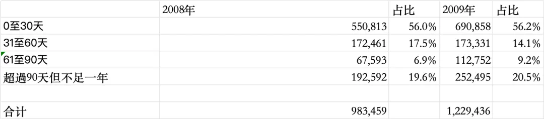 可以看到0-30天的占比变化不大,主要是之前31-60天的账期延长到了61-90天,也算是金融危机下用户回款账款有所延迟的体现,整体看,有影响,但占比不大。