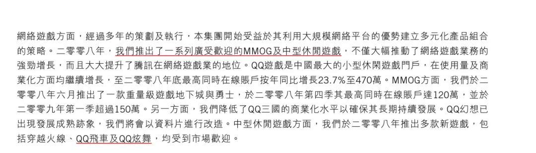 但根据财报用词,2007年仅仅提到了QQ三国和QQ华夏,而到了2008年则重点提到了后来被称为四大名著的四款爆款游戏:地下城与勇士,穿越火线,QQ炫舞和QQ飞车。