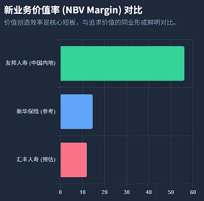 新业务价值率(NBV Margin) | 10%-15% (有提升空间) | 56.1% (中国内地) | N/A | 领先者 >25% |