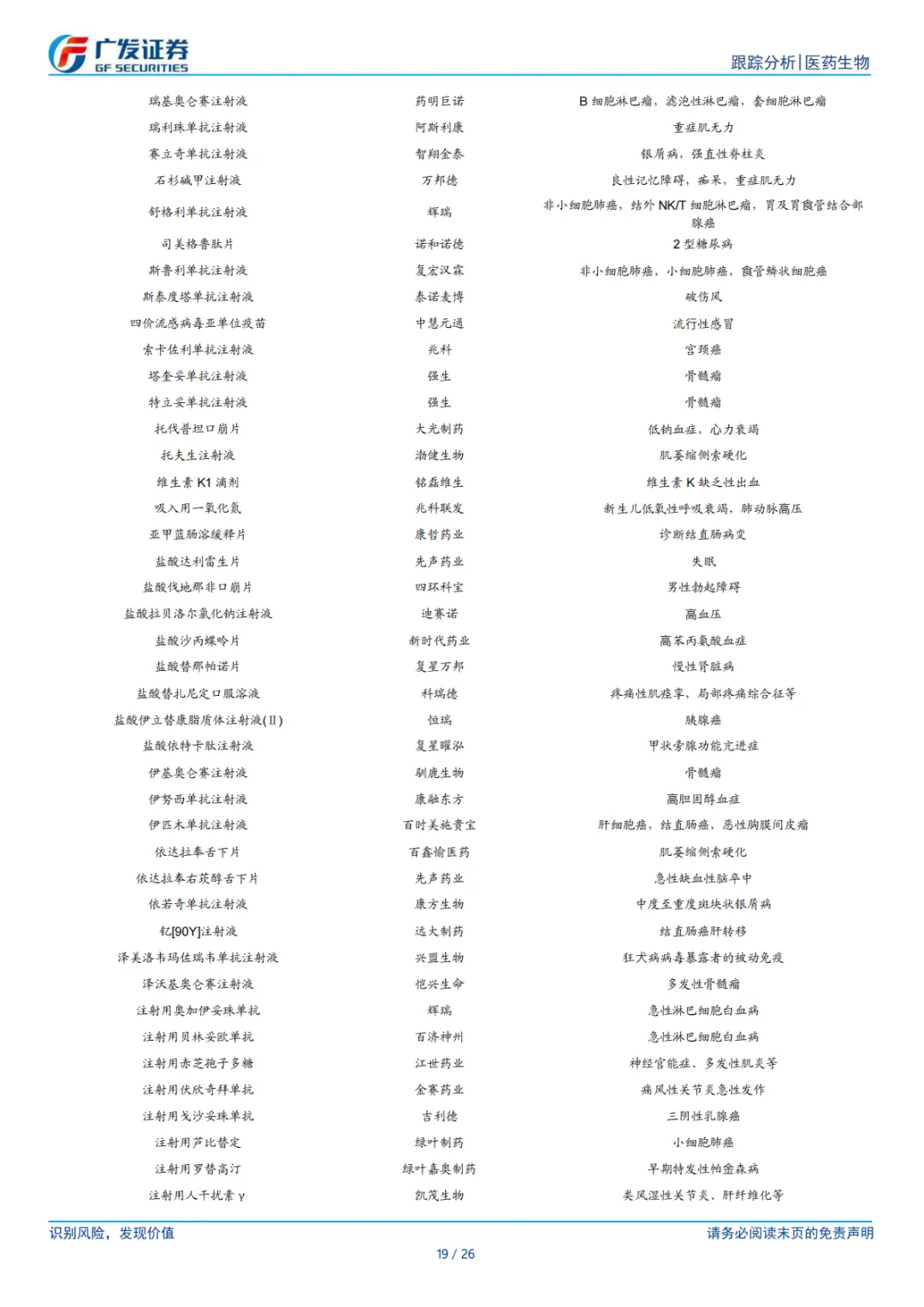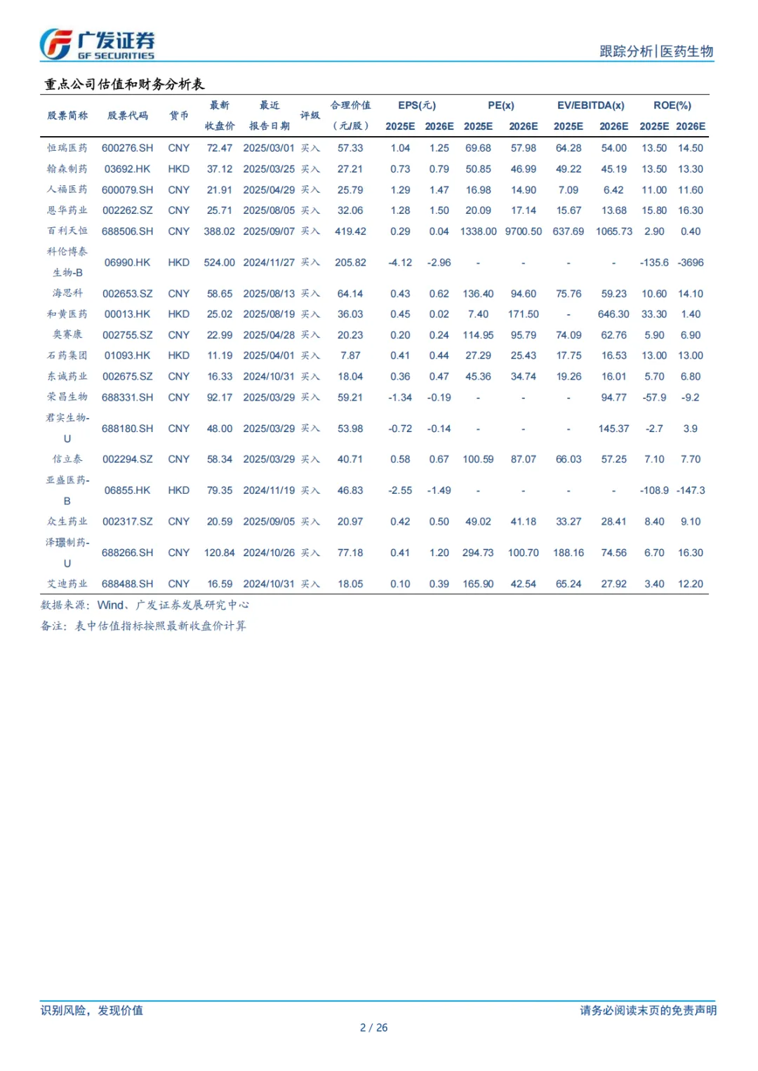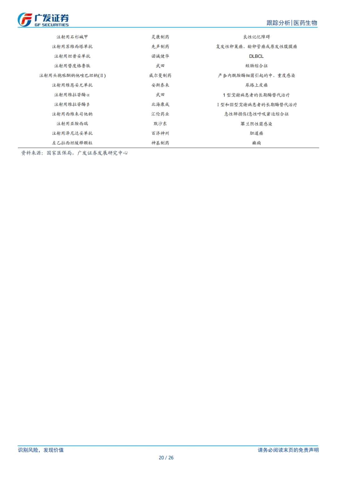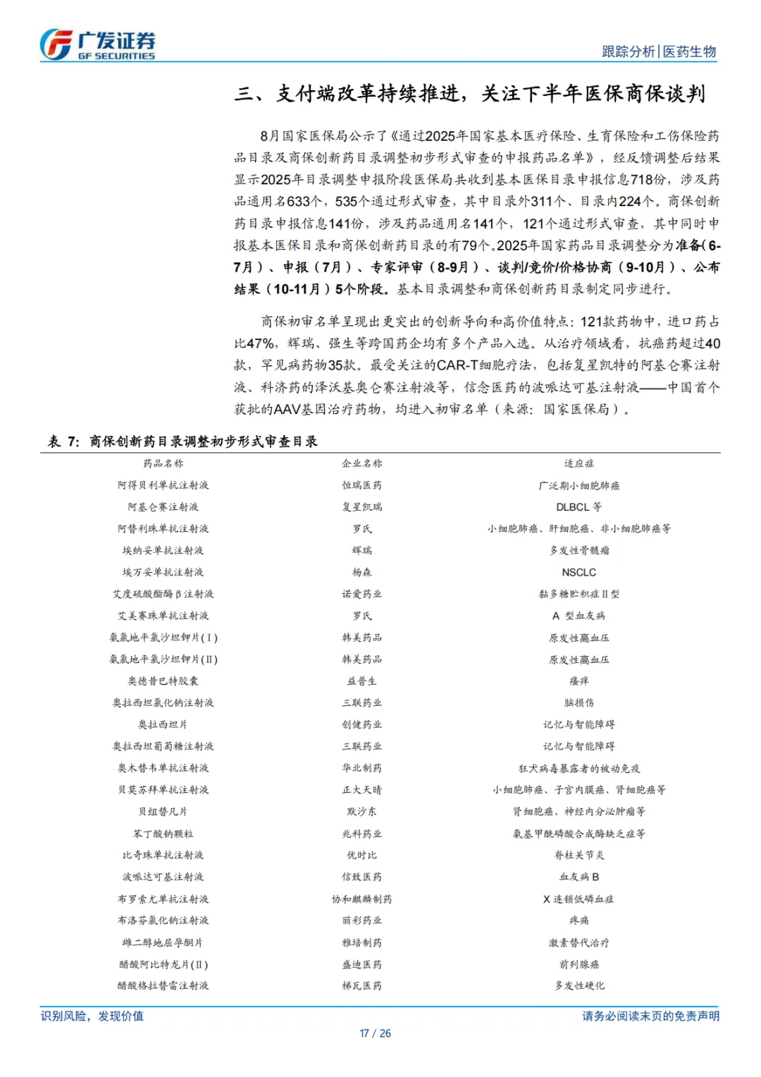 ⚫ 风险提示。仿制药集采和新药谈判价格降幅超预期风险、新药研发失败风险、创新药上市后放量不及预期风险、市场竞争加剧风险等。