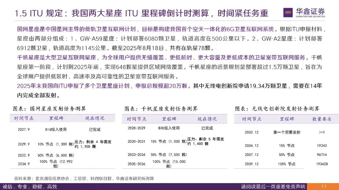 政策支持、ITU强制要求及空天资源抢占驱动商业航天业务爆发。1、政策支持:2025年作为"新质生产力"落地元年,随着国家航天局商业航天司的设立及科创板第五套标准的放宽,政策红利正加速转化为产业红利。2、ITU(国际电联)频轨资源"先到先得"规则及"里程碑"发射要求,为我国"国网"与"千帆"两大星座按下了加速键。未来5年,我国面临约2500颗卫星的发射缺口,发射服务将从"卖方市场"转向"供不应求",倒逼运力爆发。3、空天资源有限,低轨空间轨道(LEO)和无线电频率(Ka/Ku/V/Q/V等频段)是具有战路属性的不可再生资源,我国需快速发射卫星维持组网要求,并掌握空"路权"。