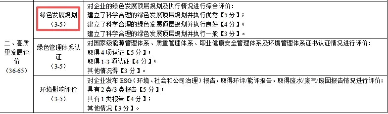 建立了科学合理的绿色发展顶层规划并执行优秀【5分】;建立了科学合理的绿色发展顶层规划并执行良好【4分】;建立了科学合理的绿色发展顶层规划并执行一般【3分】