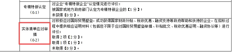对积极应对国际贸易壁垒,成功获得国家财政补贴、税收优惠、融资支持等政府帮助和扶持的企业,在招标过程中提供相应证明材料(包括但不限于应对国际贸易壁垒举措、补贴批文、税收优惠证明、融资协议等)进行评价: