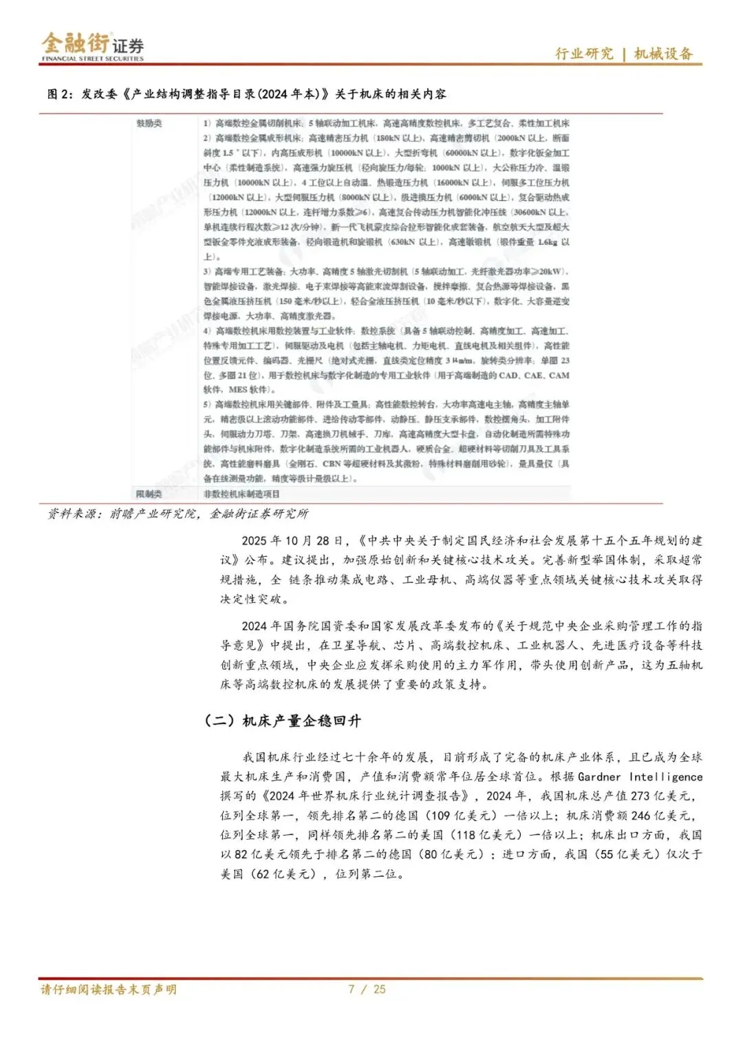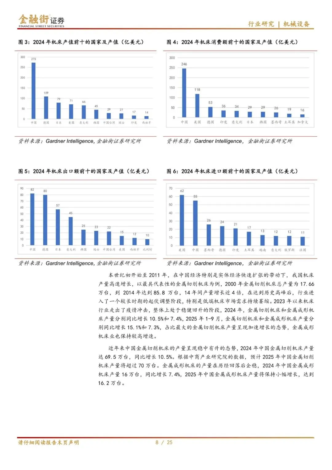 2. 产量与规模:金属切削机床2024年产量69.5万台(+10.5%),2025年1-9月再提速至+15.1%;数控机床市场2024年规模4325亿元,2025年预计突破4500亿元。