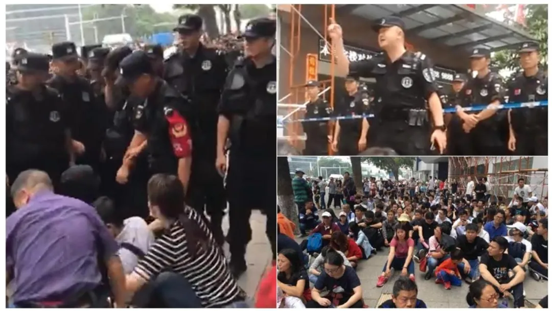 中国东莞的P2P平台团贷网倒闭后,大量投资者举行了静坐抗议。