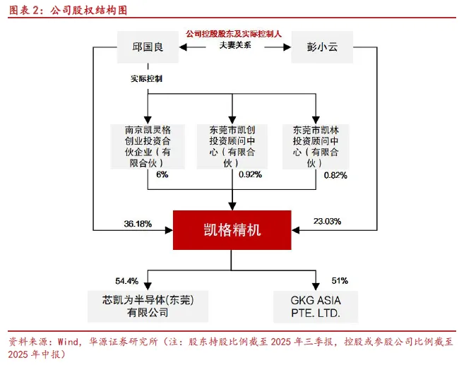 股权结构稳定,员工利益和公司长期发展绑定。公司控股股东及实际控制人为邱国良、彭小云夫妇,邱国良担任公司董事长及董事职务。二人通过其控制的南京凯灵格创业投资合伙企业(有限合伙)、东莞市凯创投资顾问中心(有限合伙)、东莞市凯林投资顾问中心(有限合伙),合计持有60%以上股权。公司2025年10月16日实施第一次股权激励计划,面向高级管理人员和核心技术人员合计69人,授予股份58.65万股,约占激励计划公布日公司股本总额的0.55%,员工利益和公司发展绑定。