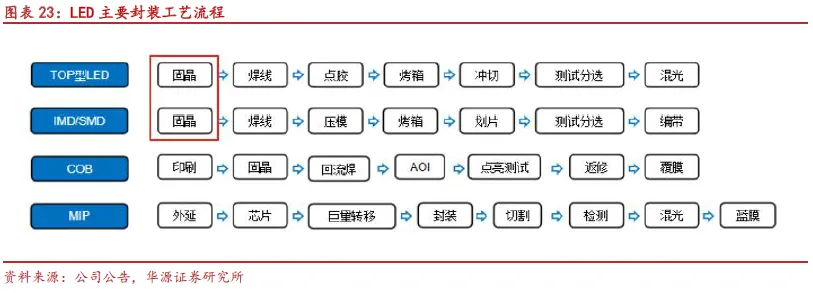 LED固晶机持续迭代升级可提高良率并降低生产成本。随着芯片尺寸的不断缩小,面板上单位面积的LED芯片用量急剧增加,升级封装工艺段设备的性能和保证封装良率属于行业降本的重要环节之一。当前可通过缩小LED芯片尺寸、提升点测分选效率、芯片降价等方式降低成本,其中通过升级封装工艺设备可以提高点测分选效率以达到降本目的。行业中,特别是Mini/Micro LED显示器件的封装过程中,固晶设备、印刷设备是实现LED芯片巨量转移、提升作业速度和产品良率的核心设备,也是显示器件量产的关键设备。