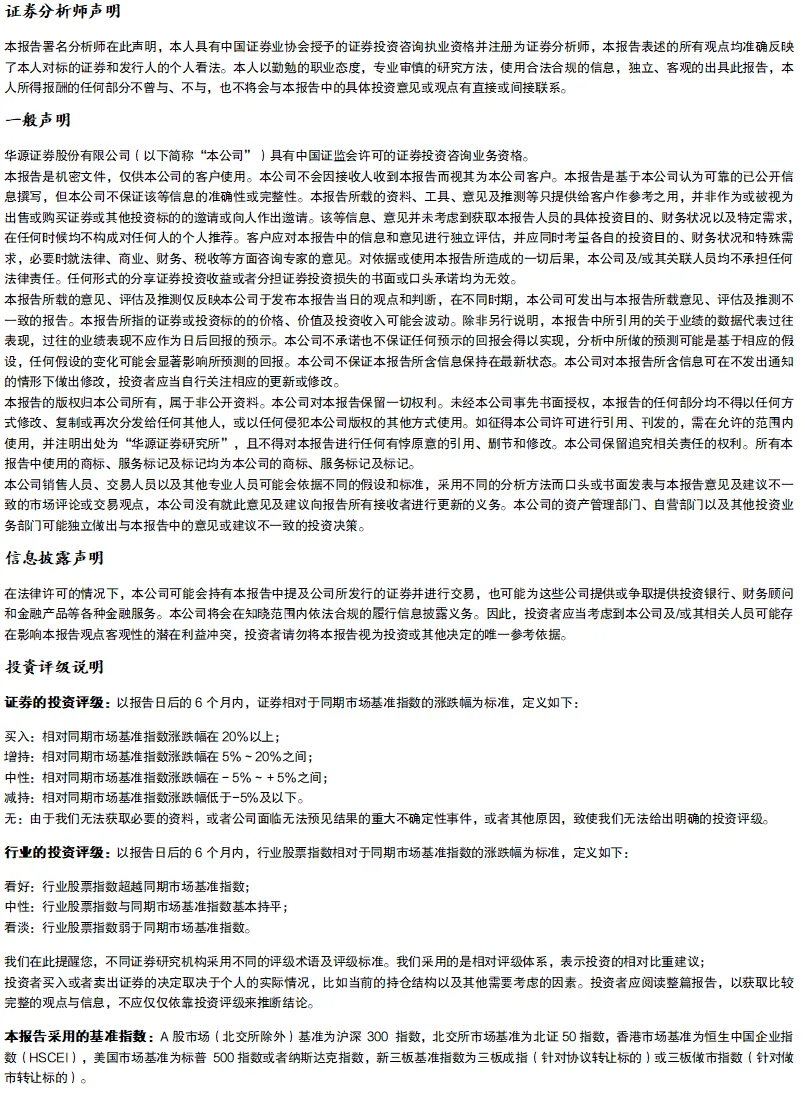 本资料较之华源证券正式发布的报告存在延时转发的情况,并有可能因报告发布日之后的情势或其他因素的变更而不再准确或失效。本资料所载意见、评估及预测仅为报告出具日的观点和判断。该等意见、评估及预测无需通知即可随时更改。证券或金融工具的价格或价值走势可能受各种因素影响,过往的表现不应作为日后表现的预示和担保。在不同时期,华源证券可能会发出与本资料所载意见、