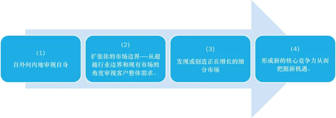 - 扩张你的市场边界——要从超越行业边界和现有市场的角度审视客户整体需求。