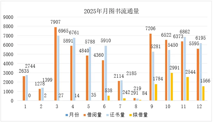 2025年共有7085人去图书馆借书,总借阅量为64839册。其中本科生借阅量为22004册,研究生借阅量为34706册,约占总借阅量的54%。人均借阅量方面,本科生人均借阅量1.16册,研究生人均借阅量2.42册。