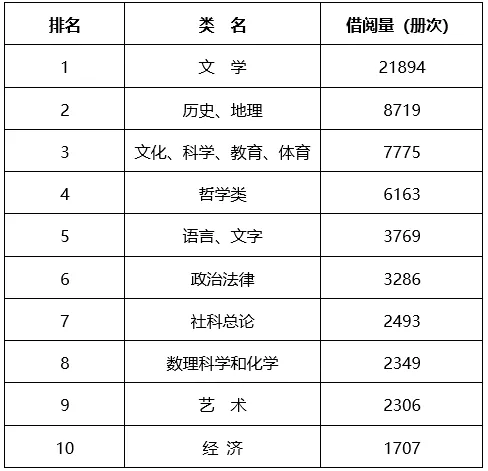 文学类的书毫无疑问是大家的首选,几乎是总借阅量的1/3;历史地理类、文化科学教育体育类借阅量占比也均超过10%。