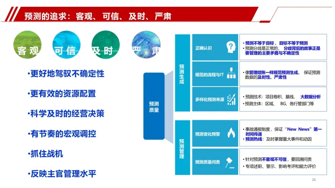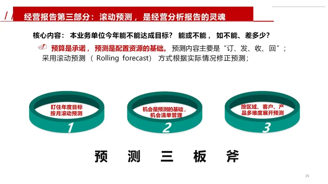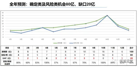 老板和各经营单元主管听业务单位报告时,其实只想问“你负责的业务单位,今年能不能达成目标?”,全年预测就是回答这个问题:能或不能;如不能、差多少。