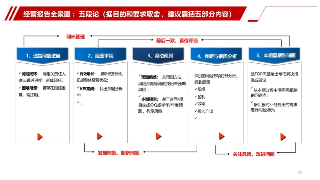 业务报告=具体业务单位的作战计划,其价值是将差距分析透、找到机会和路径实现目标。