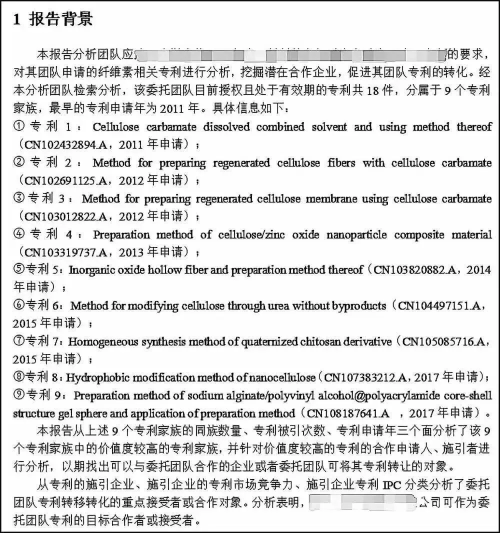(1) Purpose of data analysis: At the request of ×××, analyze the cellulose-related patents applied for by their team, explore potential cooperative enterprises, and promote the transfer and transformation of their team's patents.