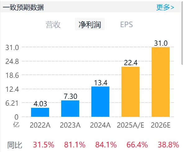 综合机构观点,市场普遍预期天孚通信2026年净利润增速有望保持在30%-50%的区间,继续享受行业高贝塔。目前26年公司一致预期净利润增速38.8%。