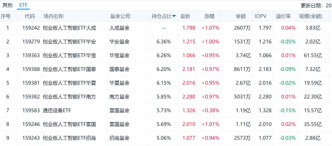 相关ETF:创业板人工智能ETF、通信设备ETF