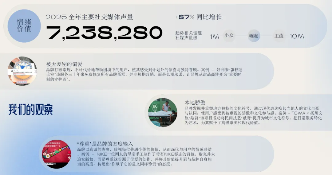7. 情绪价值精细化:从标签到具体共鸣情绪价值已成为基础要求,未来比拼的是情绪的精准度与独占性。品牌应锚定一种具体、可沉浸的情绪(如解压、笃定),并通过“真诚意外感”的沟通方式,在恰当时机触动人心。