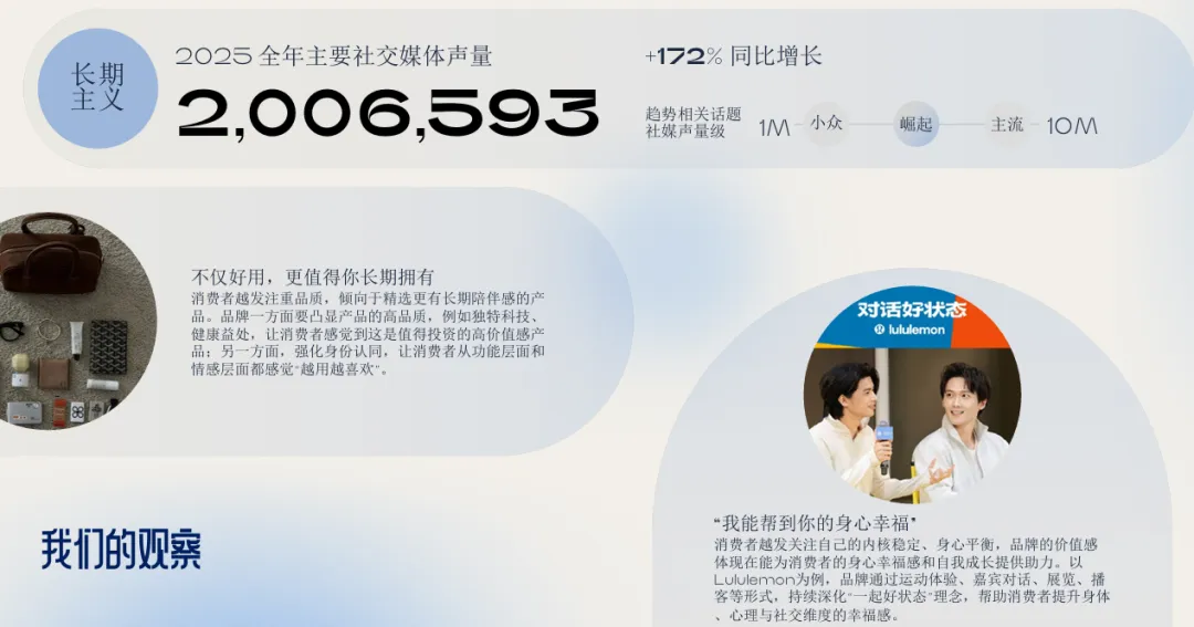 5. 理感双驱:精打细算与为热爱买单并存在经济平缓期,消费者形成“理性日常+感性犒赏”的消费模式。品牌需兼顾实用价值与情绪价值,让产品成为品质与情感的复合体,并通过倡导某种生活方式,与消费者建立深度精神联结。