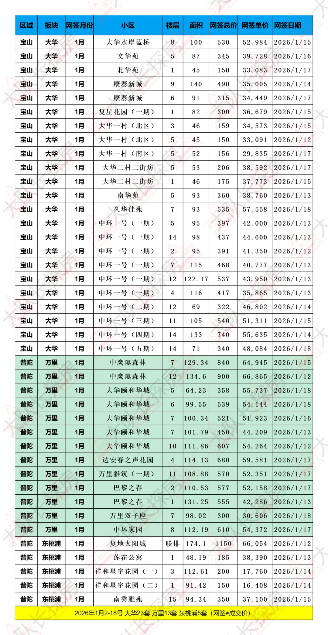 2026年1月2-18号 大华23套 万里13套 东桃浦5套