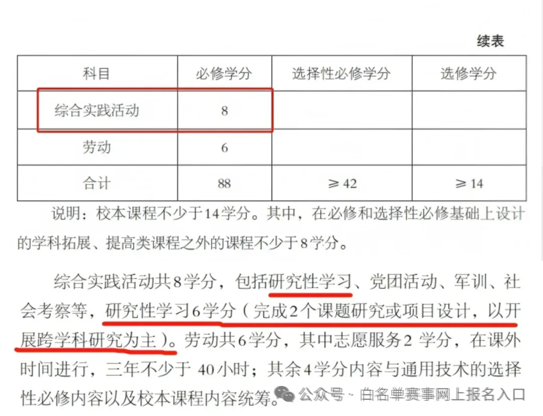 2020年,教育部印发《普通高中课程方案和语文等学科课程标准(2017年版2020年修订)》。方案中明确说明,普通高中在原来科目基础上开设综合实践活动、劳动课程两门课程。其中综合实践活动必须学分为8分,包括研究性学习、党团活动、军训、社会考察等,而研究性学习就占了6分,可见其重要程度。