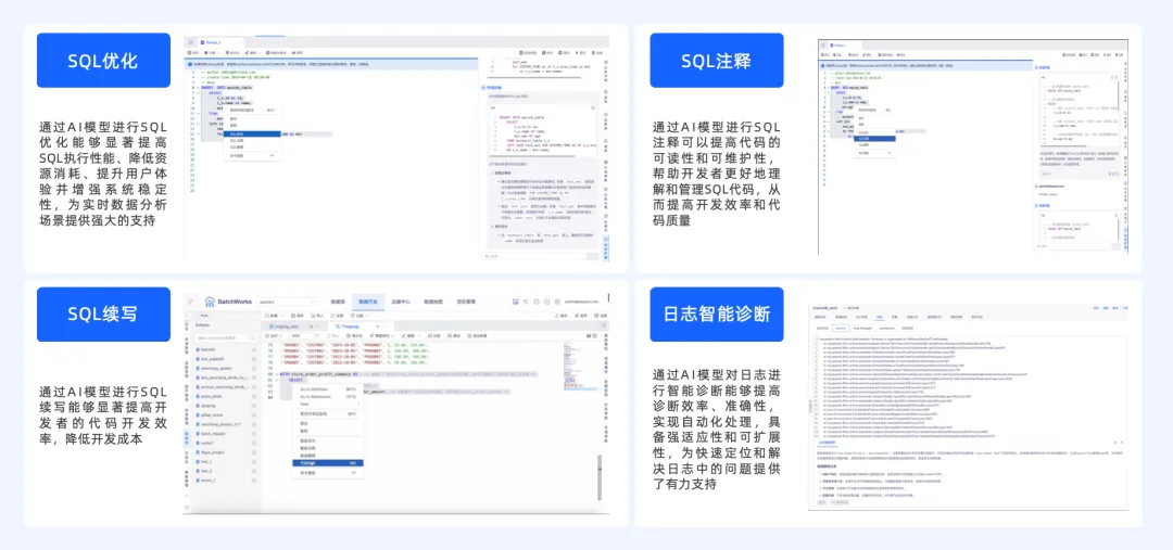 在数据开发与运维场景中,围绕 SQL 编写与续写、SQL 解释与优化、日志智能解析、任务失败诊断等高频工作,逐步形成了面向数据开发与运维人员的场景智能体。这类智能体能够辅助完成常见的数据处理与问题定位任务,缩短排查链路,减少人工分析成本,并提升数据任务运行的稳定性与效率。