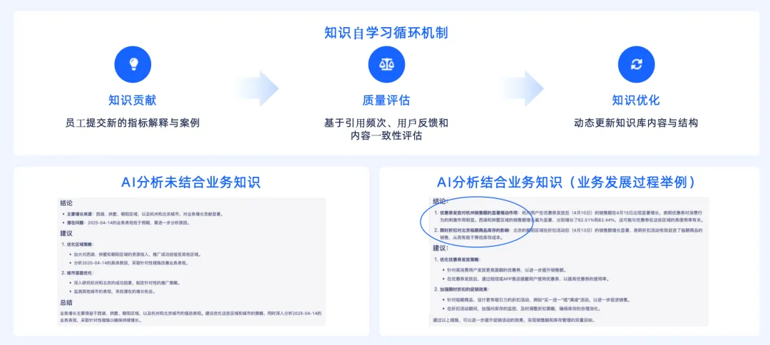 围绕数据使用的延展场景,数据智能还逐步沉淀了报告生成、文档辅助、知识库问答等场景智能体能力。这些智能体通过与企业内部文档、指标体系和业务知识的结合,支持自动生成分析报告、快速检索内部资料,提升数据成果在业务中的复用效率。