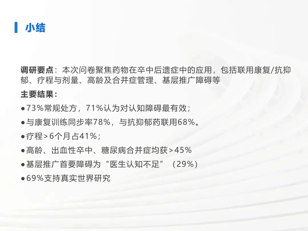 关于脑血管疾病真实世界诊疗情况的问卷调查研究项目 的项目分析报告