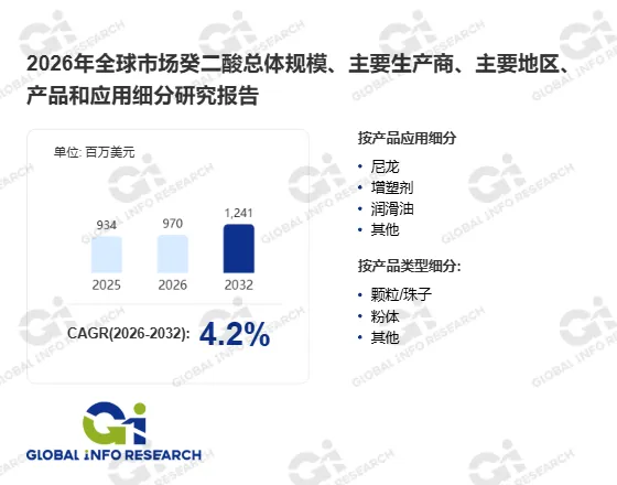 据GIR(Global Info Research)调研,2025年全球癸二酸市场收入约为9.34亿美元,预计到2032年将增至12.41亿美元,2026至2032年间年复合增长率(CAGR)为4.2%。这一稳健增长反映出癸二酸在传统与新兴应用中的持续渗透,尤其受益于工程塑料、生物基材料及高性能润滑剂需求的上升。