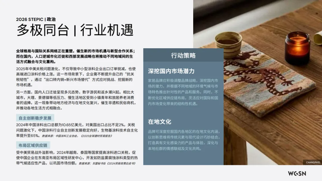 品牌端:深挖在地文化,将传统色彩与现代设计结合;强化健康环保标签,突出低 VOC、抗菌等核心指标;搭建 AI 配色服务体系,提升个性化定制效率。