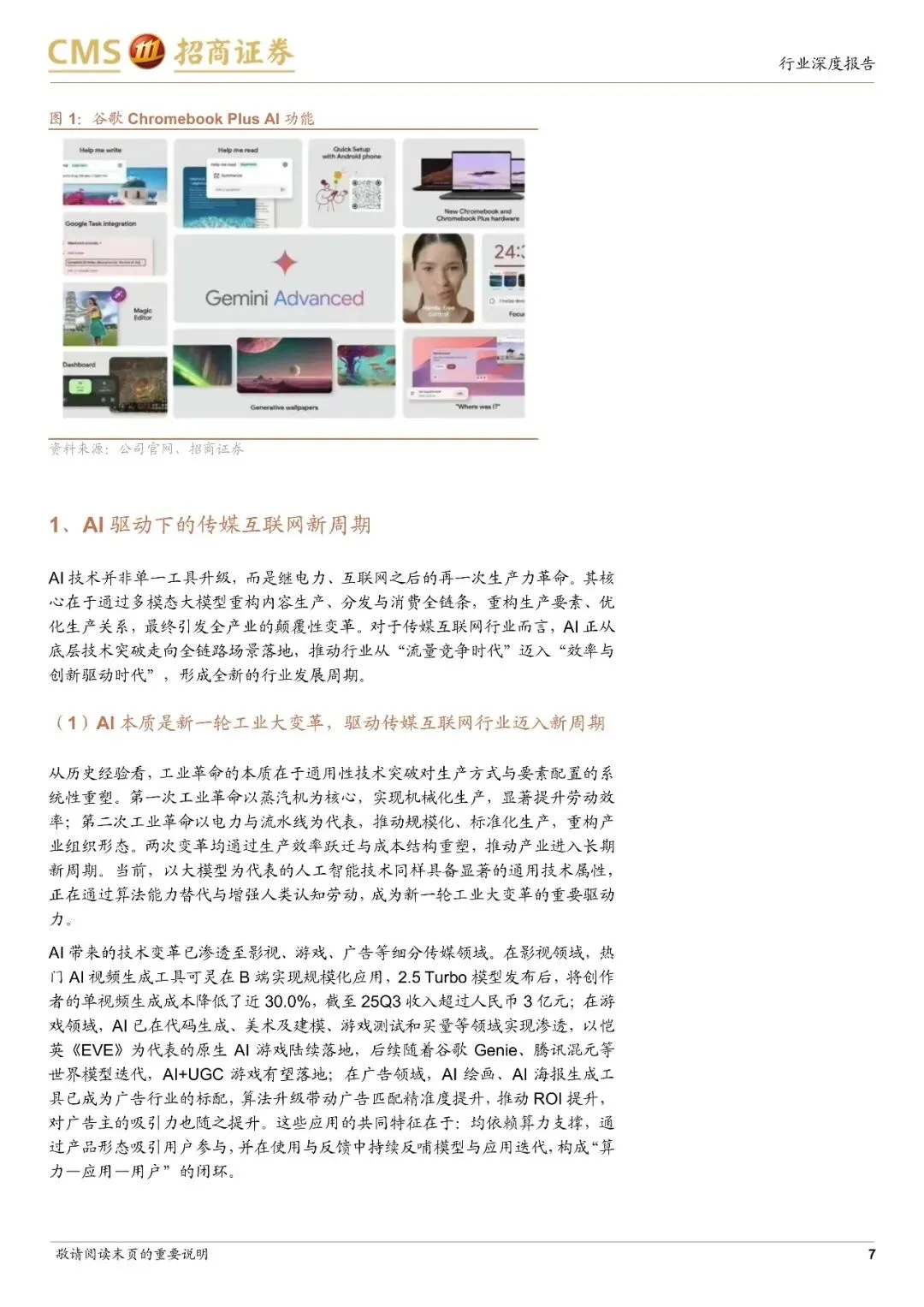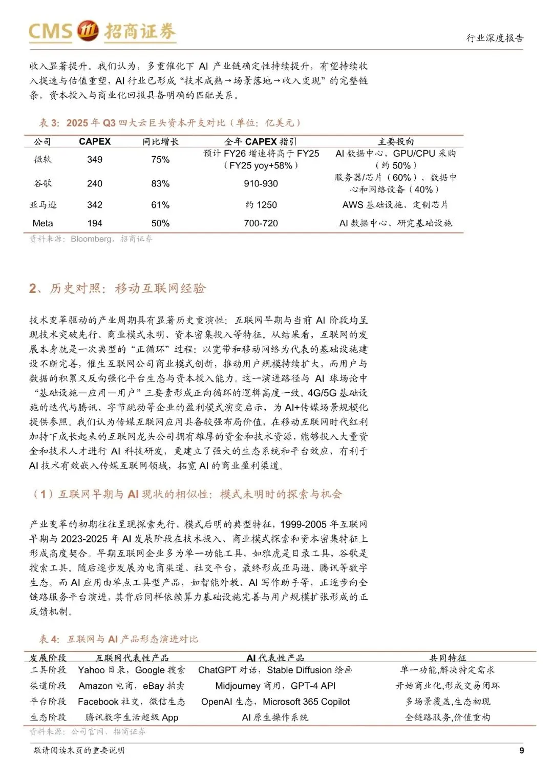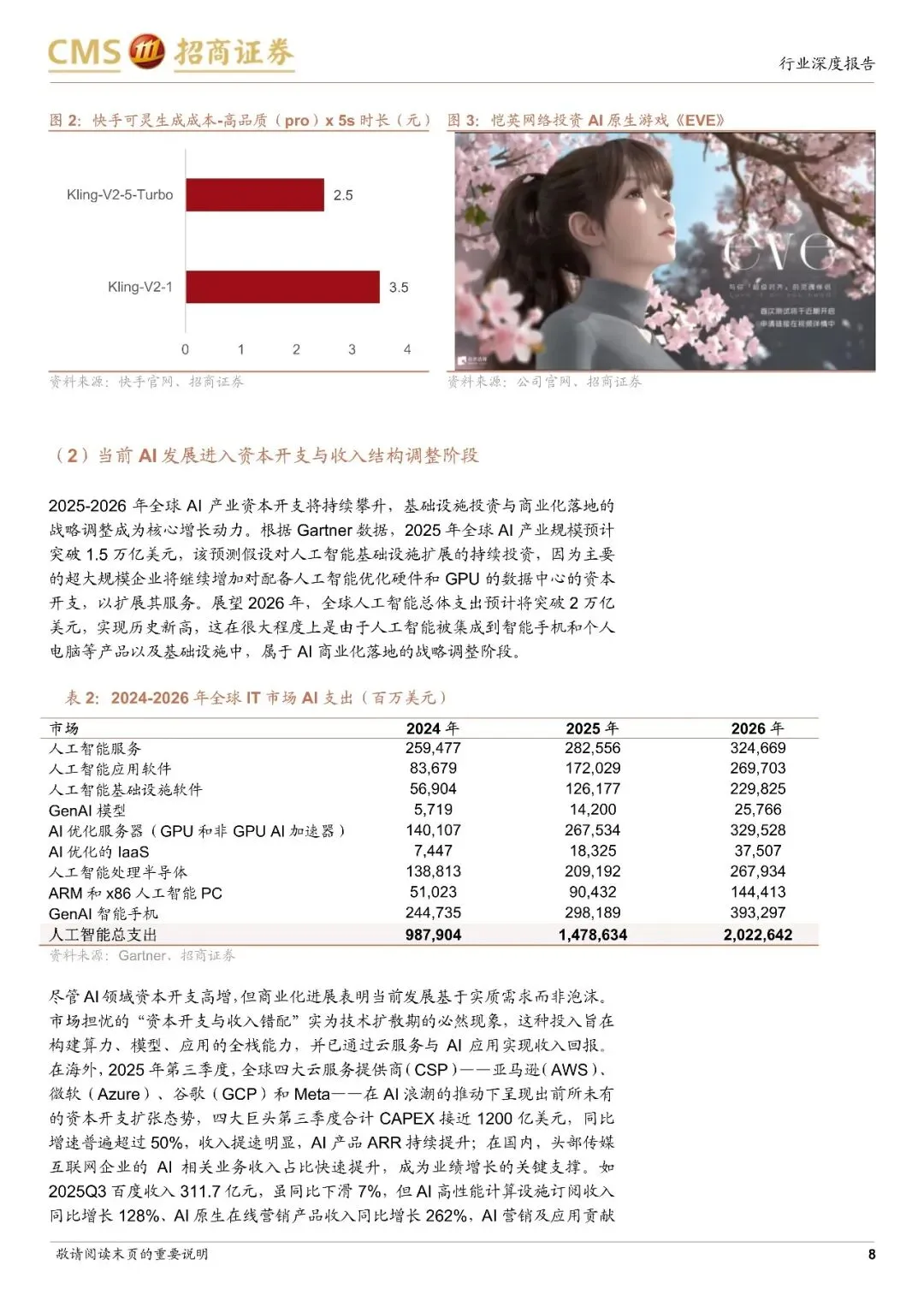核心定位:AI本质是新一轮工业革命,当前类比互联网早期与4G/5G建设期,资本投入是生态培育关键,应用层将成超额收益核心来源。"Al球场论"模型:球场(算力):GPU制造商(如英伟达)、云服务商(如AWS),提供AI开发运行的算力基础,毛利率60-70%;球队(应用):垂直领域AI应用开发者(如Midjourney、Grammarly),核心是打造"爆款品",毛利率80-90%,估值溢价最高,5.0-8.0xP/S;球迷(用户):终端用户与企业客户,核心是"流量聚合",通过订阅费、广告等支撑产业运行,毛利率40-50%算力基础设施建设渐入佳境,应用层"姆巴佩"时刻临近,需关注AI在传媒互联网各细分领域的赋能机会,
