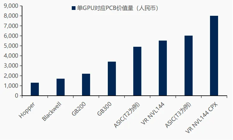 1)Bianca板:使用M8级别覆铜板,规格为5阶22层HDI,单价约4000~4500元/块,单个GB200 NVL72机柜中需要18个Compute Tray,共36块Bianca板,合计单rack价值量约14~16万元;
