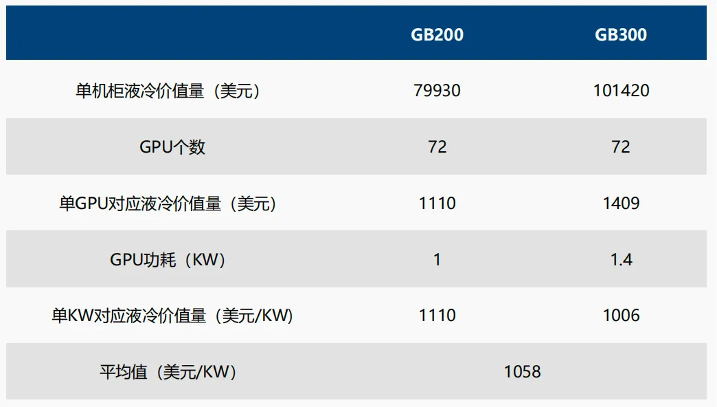 考虑到GB200和GB300的单GPU功耗分别为1000w/1400w,得出当前海外液冷价值可基本按照1-1.1k美元/kw计算。R200功耗为1.8-2.3kw,单卡对应液冷价值量或达到2400美元。