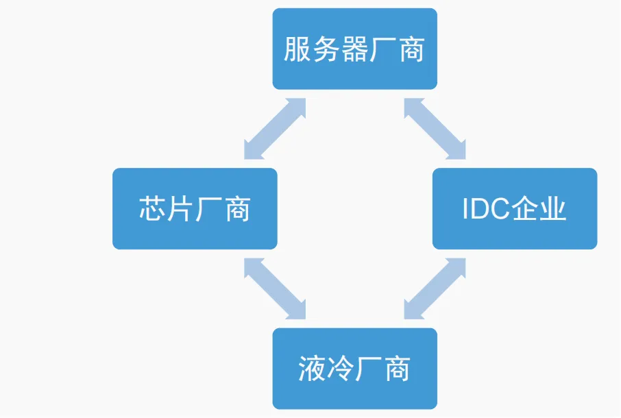 液冷相较于风冷而言,与服务器的匹配度要求进一步提升,无论是冷板式服务器(要求液冷冷板匹配服务器型号)还是浸没式服务器,都需要服务器、液冷厂商、IDC企业(业主)共同参与到设计等环节。而当前阶段,绑定加速卡芯片厂商的公司具备显著的先发优势。