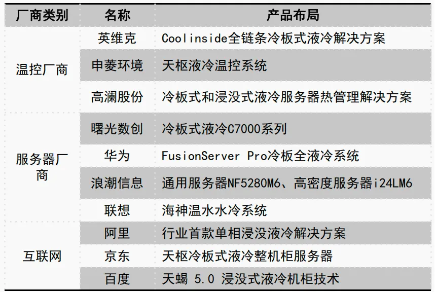 国产厂商:在温控、服务器及CSP云厂相继布局