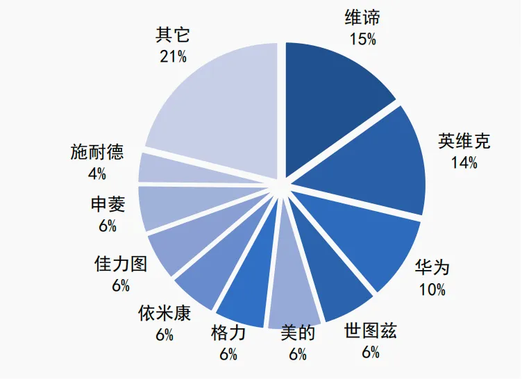 CDU环节:Vertiv为核心供应商,占据主要份额。