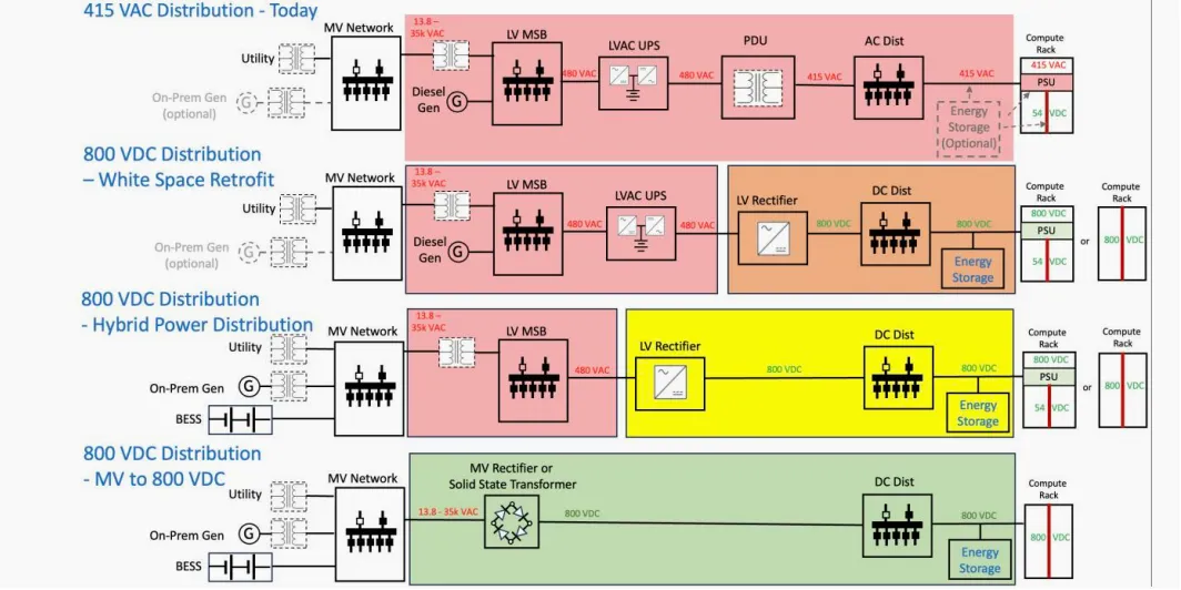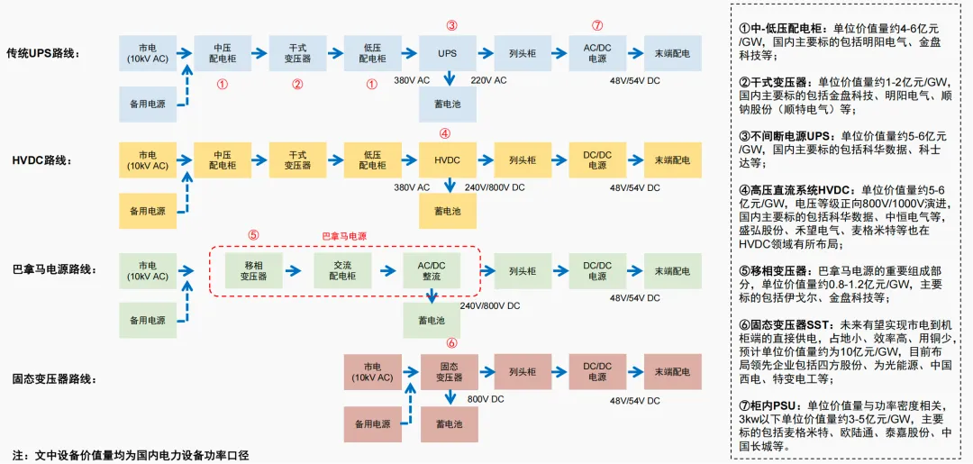 AIDC供配电路径演变,关注HVDC、SST领域。