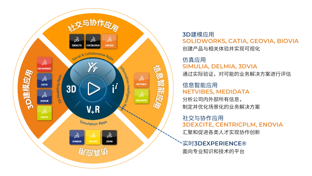 达索系统以3DEXPERIENCE平台为中枢,覆盖“设计-仿真-制造-运维-创新”的全链路产品体系,每个模块都精准破解行业痛点。