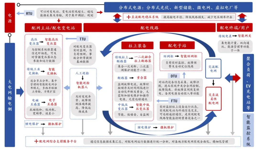 配网侧投资重点包括老旧设备改造与一二次设备融合。